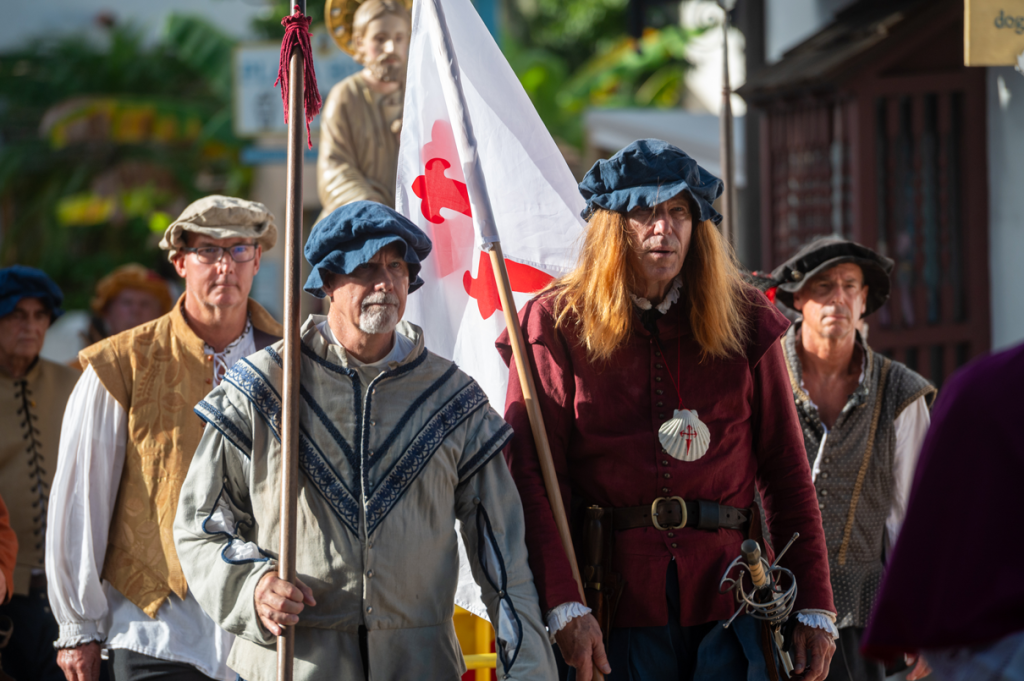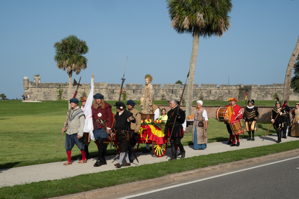“We usually just walk from the Castillo to the cathedral,” she said. “But this year, we added the walk from the shrine. We’re thankful to the reenactors who take care of the statue and help carry it reverently.”