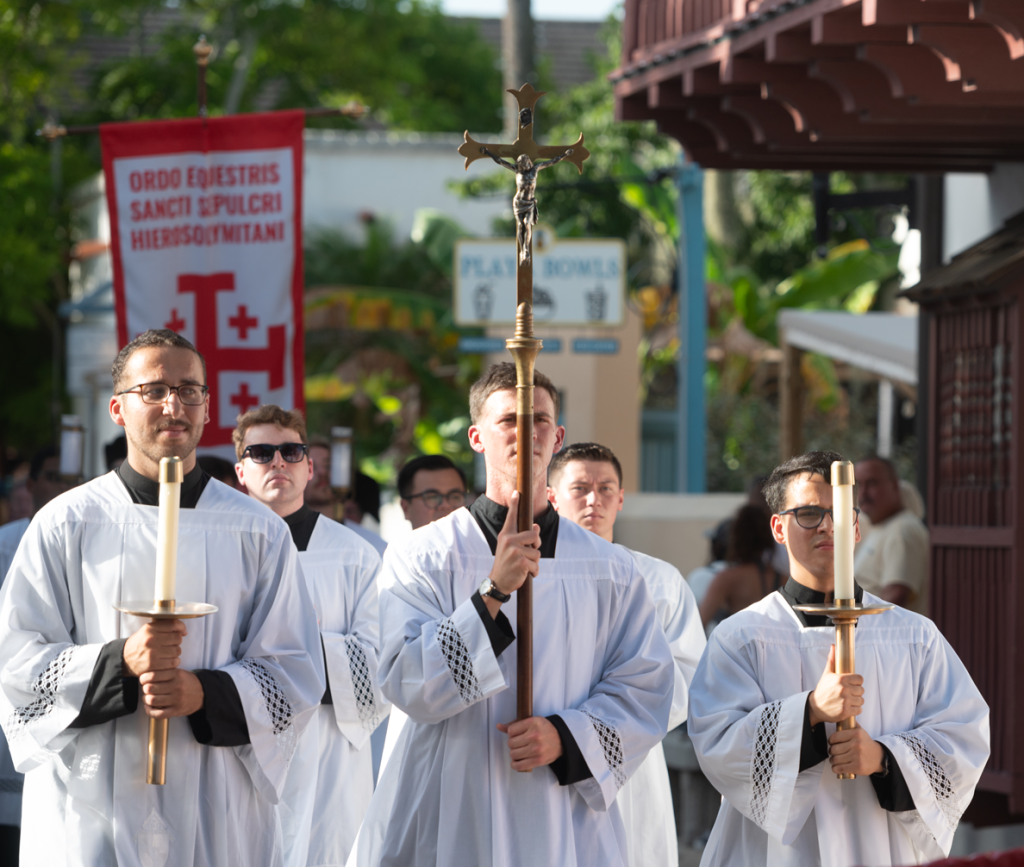 Beneath the blazing sun and centuries of Catholic tradition, hundreds of pilgrims gathered Friday, July 25, to celebrate the feast of St. James with prayer, pilgrimage and Mass in the heart of the nation’s oldest city.
