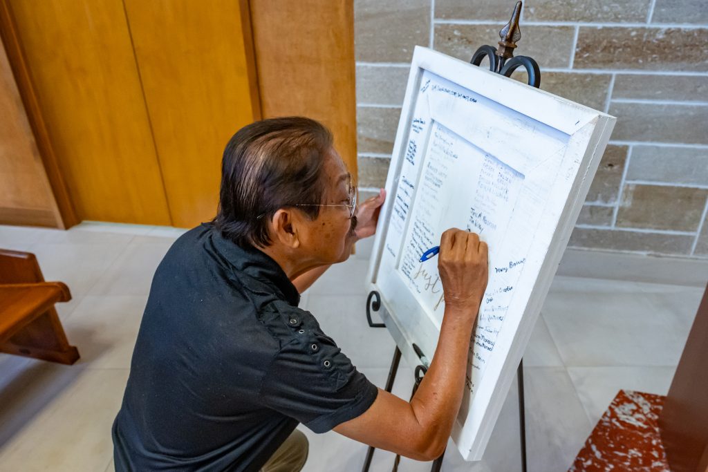 Father Edward Rooney was the celebrant for the Mass that opened the event, where everyone who attended had the opportunity to honor their loved ones who passed away by writing their names on a remembrance poster and bringing up a small cross in memory of them during the presentation of the gifts.