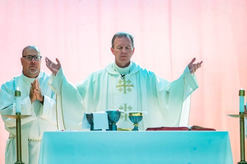 Bishop Erik Pohlmeier served as the celebrant for Mass to start the day and spoke with clergy members in attendance about evangelizing catechesis within the parishes.