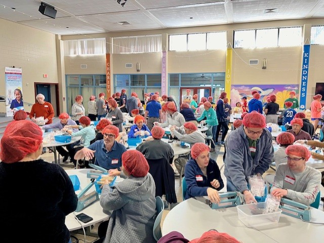 Queen of Peace supports more than 17 community partners worldwide. Projects include building a classroom in Bogotá, Colombia; funding salaries for social workers through the Kiera Grace Foundation, which helps parents navigate childhood cancer treatment; and packing meals for Rise Against Hunger with parishioners of all ages.