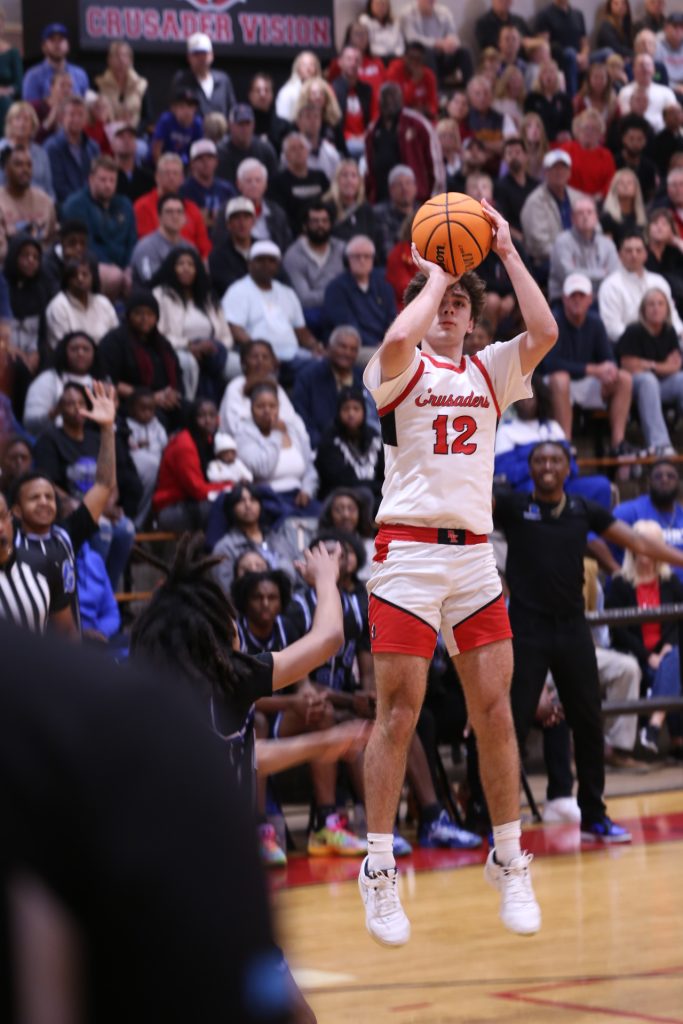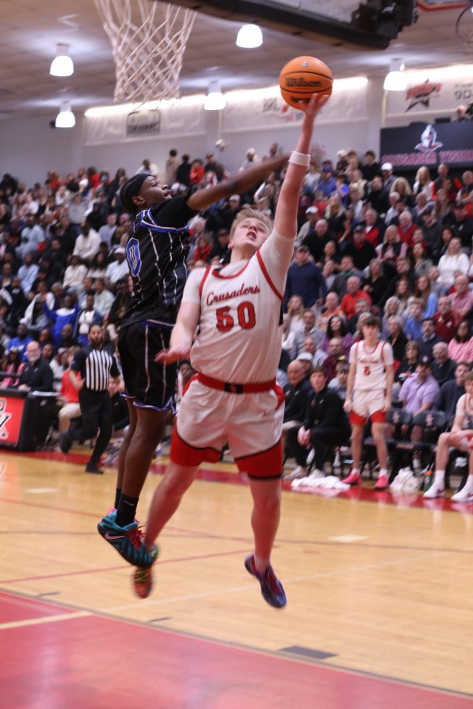 Fellow junior, Drew Jackson made some big shots early on to help the Crusaders find their rhythm, many of which were the result of him maneuvering through traffic to create an open shot or a lane to the basket.