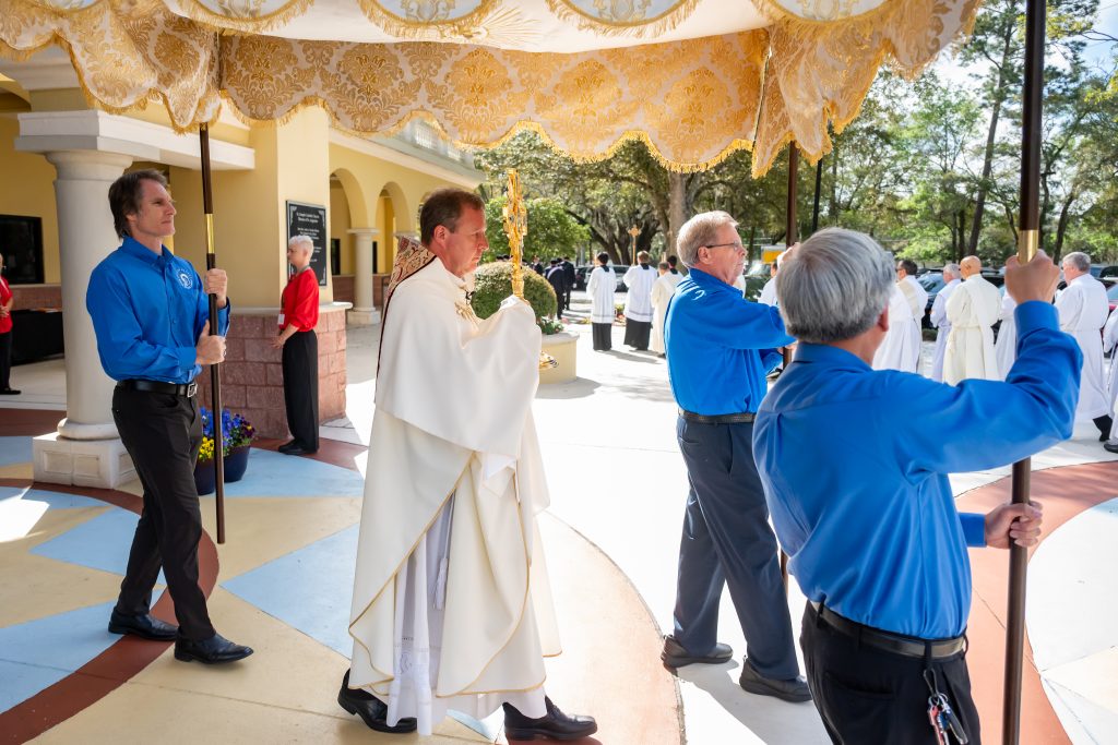 On the second day, shortly after Mass, those in attendance responded to that call by gathering outside for a Eucharistic procession. Led by Bishop Pohlmeier carrying the monstrance, the procession traveled along Old St. Augustine Road and around St. Joseph Catholic Church.