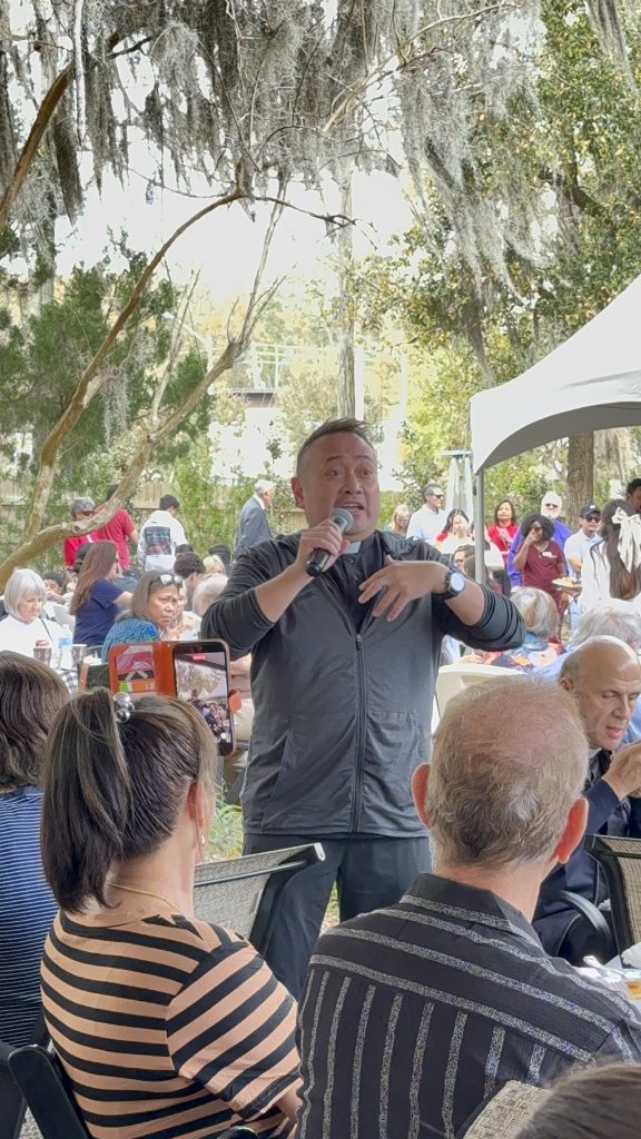 Father Leo’s residency at Holy Faith included presiding and preaching at weekend and daily Masses; a fireside pizza night with youth and young adults; a Sunday brunch; and three mission talks, “How To Get Your Family To Heaven,” “Spiritual Combat and the Blessed Mother,” and “Feeding My Faith,” a cooking demonstration followed by a catered dinner including Father Leo’s special recipe.