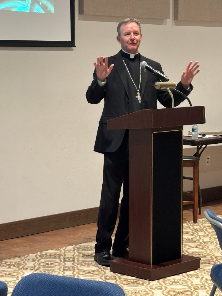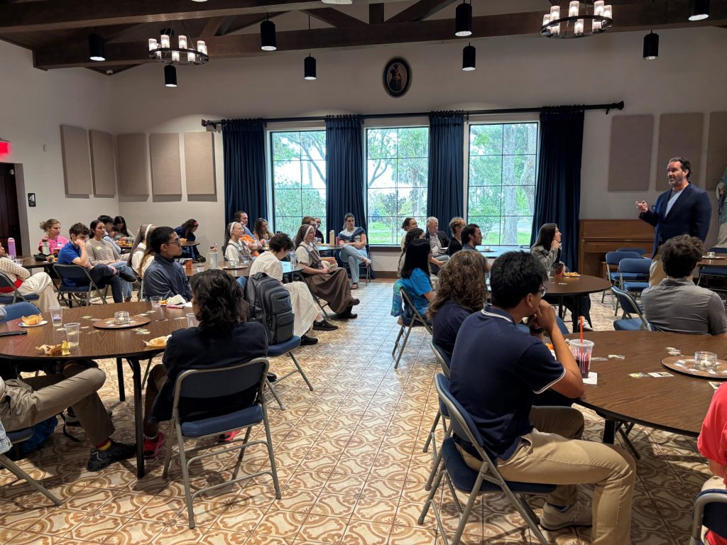 Mass at the Rustic Altar on the grounds was celebrated to start the day followed by various talks from renowned national speaker Jeff Joaquin with his presentation on “Lost Fatherhood,” and a special presentation by Bishop Erik Pohlmeier on how to be an unwavering champion of human dignity to every person in college and beyond as one navigates life’s path.