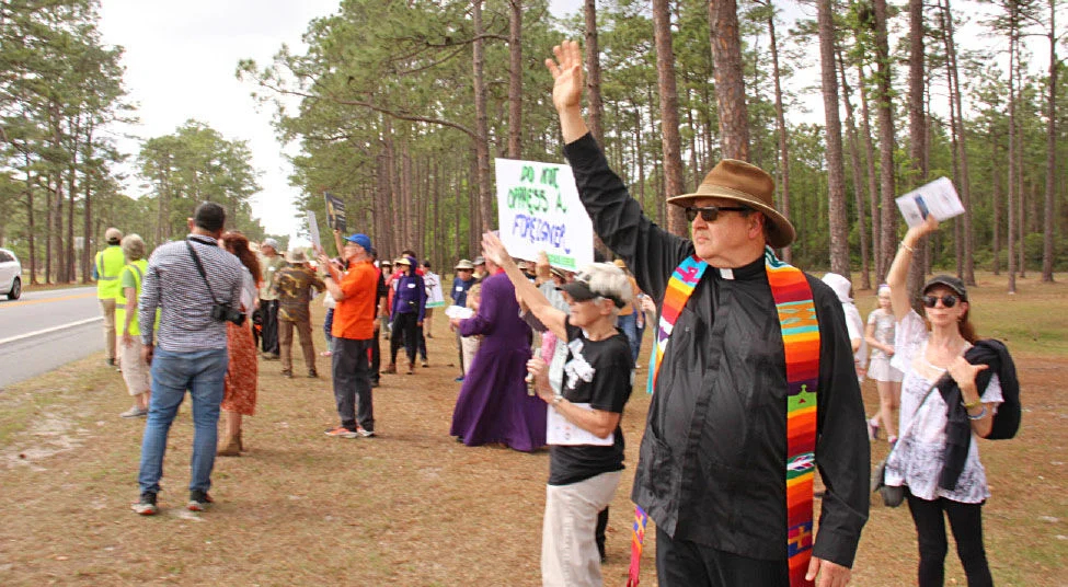 About 50 people gathered on Good Friday, April 3, 2026, near Baker Correctional Institution in Sanderson for a prayerful public witness in solidarity with immigrants detained inside the facility, referred to by participants as “Deportation Depot.” The event, centered on a Stations of the Cross reflection, drew people of various faith traditions who sought to connect Christ’s suffering with the experiences of those facing detention and deportation.