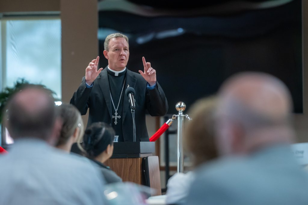 The Sisters of St. Joseph were on hand and offered the event’s invocation, while Bishop Pohlmeier presented the awards and thanked them for the work they have done to grow the Church and spread God’s love.