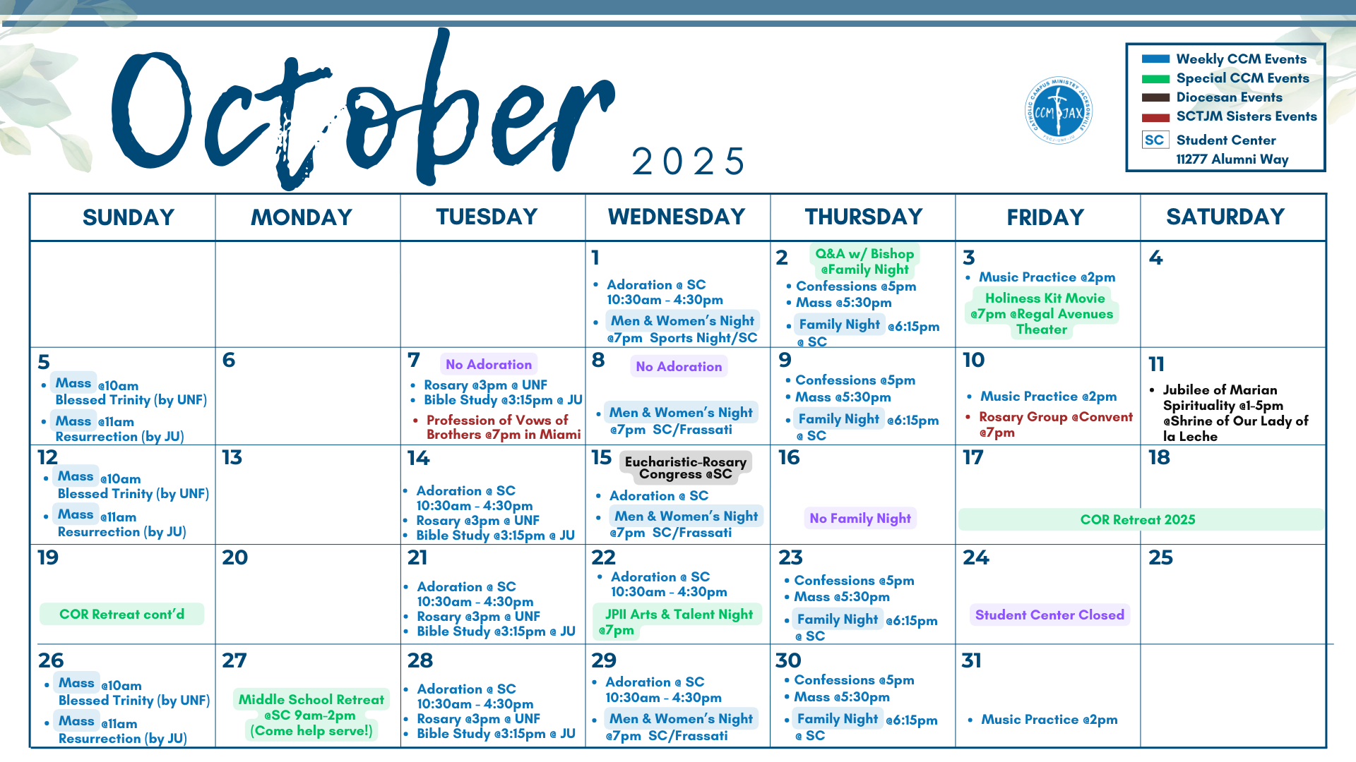 10 a.m. at Blessed Trinity (near UNF)