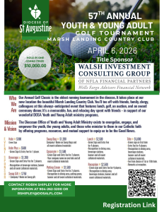 The Diocese of St. Augustine’s Youth and Young Adult Office invites parishes to support its 57th Annual Youth and Young Adult Golf Tournament on Easter Monday, April 6. Proceeds benefit youth and young adult ministry across the diocese. Click here for a flyer.