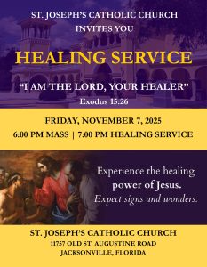 St. Joseph’s Catholic Church is hosting a healing service on Friday, November 7, at the main church. The evening begins with a 6 p.m. Mass, followed by the healing service starting at 7 p.m.
