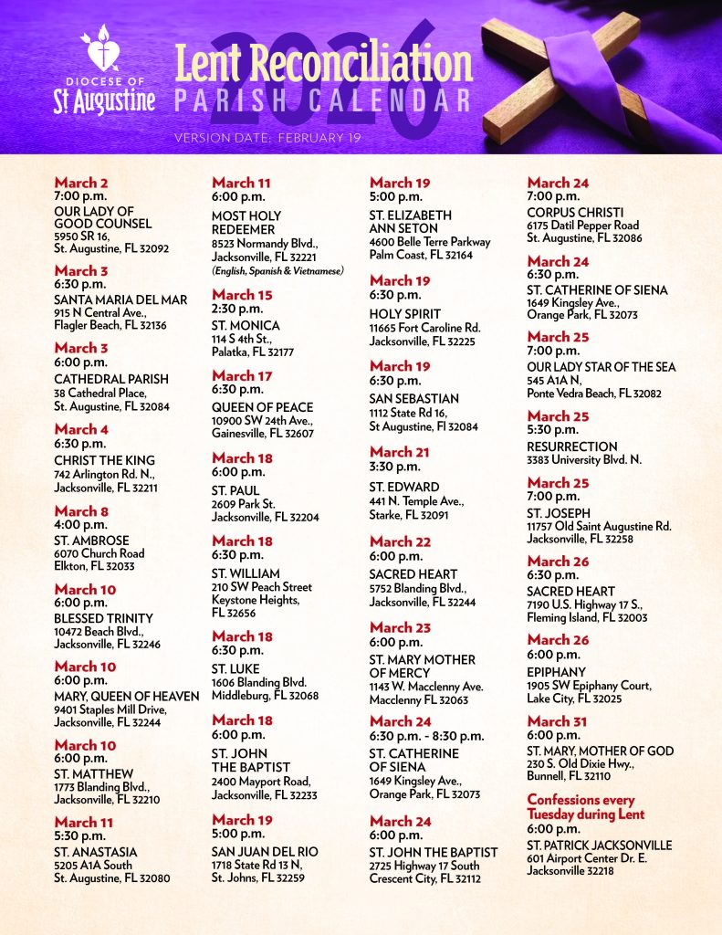 Parish Reconciliation Schedule