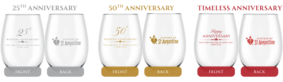 Special 25th and 50th anniversary milestone or timeless (no amount of years on it) stemless wine glasses are available to purchase (one (1) glass is included per purchase)! If attending in-person, your stemless wine glass with be presented to you along with your certificate. If attending virtually, your stemless wine glass will be shipped to you one week prior to the celebration. With a donation of $50 or more, you can receive one (1) free anniversary stemless wine glass. Glasses can be purchased through the registration form.