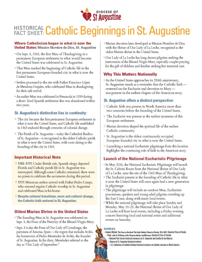 Reporters and photographers are welcome to cover celebrations of the Mass and diocesan events, including the National Eucharistic Congress. Still, we ask that you notify us in advance so we can assist you in getting clearance from the priest in charge and the event organizers. Photography is permitted inside the church during Mass with proper clearance, but please refrain from using a flash. Photographers and videographers are asked to stay a respectable distance from the altar and try not to stand in the space between the sanctuary and the congregation. And finally, we ask that you respect the privacy of individuals receiving Communion. Please direct all questions to Kathleen Bagg at kbagg@dosafl.com. Or call the Office of Communications at (904) 262-3200, ext. 110.