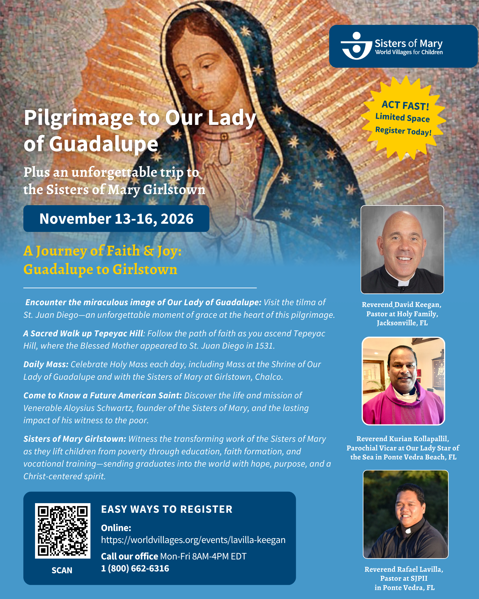 Join us on a prayerful pilgrimage to the Shrine of Our Lady of Guadalupe in Mexico City, with a special visit to Sisters of Mary Girlstown, Chalco—an inspiring mission serving children in poverty.